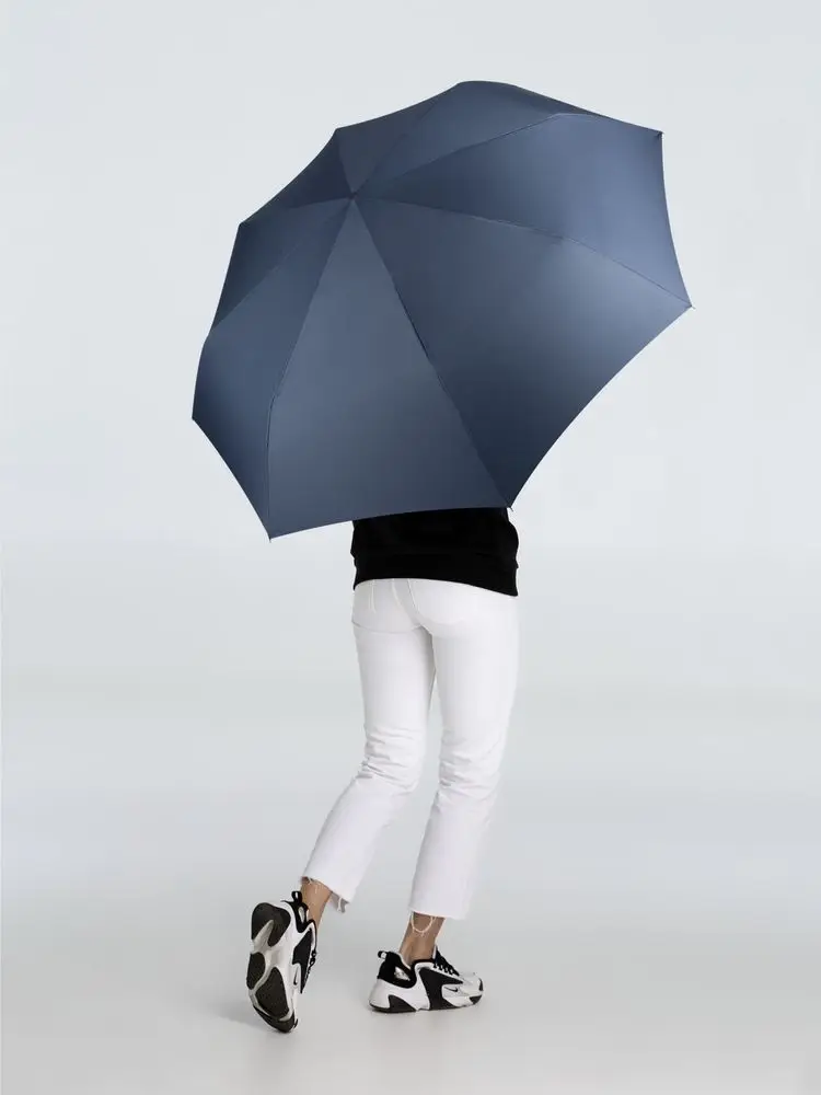 Зонт оснащен механизмом с пружиной и спицами из стекловолокна. Благодаря этому когда при экстремальных порывах ветра купол выгибается, механизм пружинит, не давая спицам погнуться или сломаться.