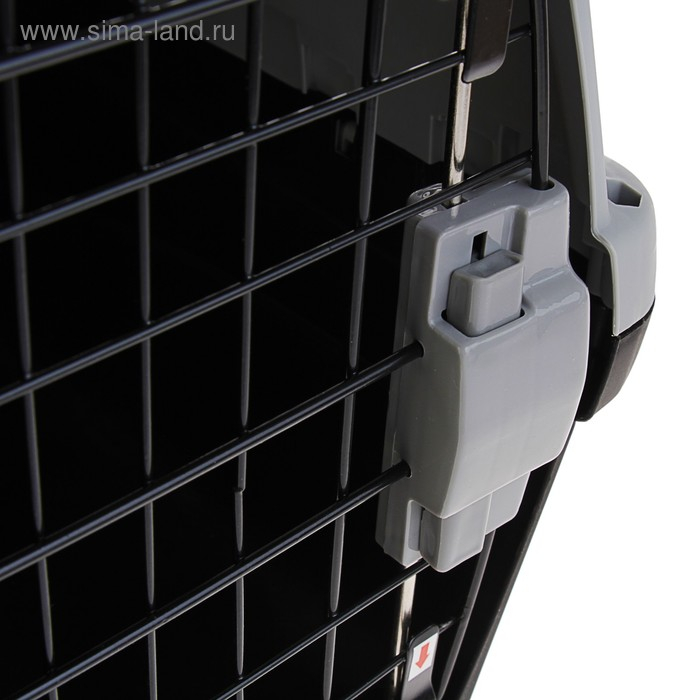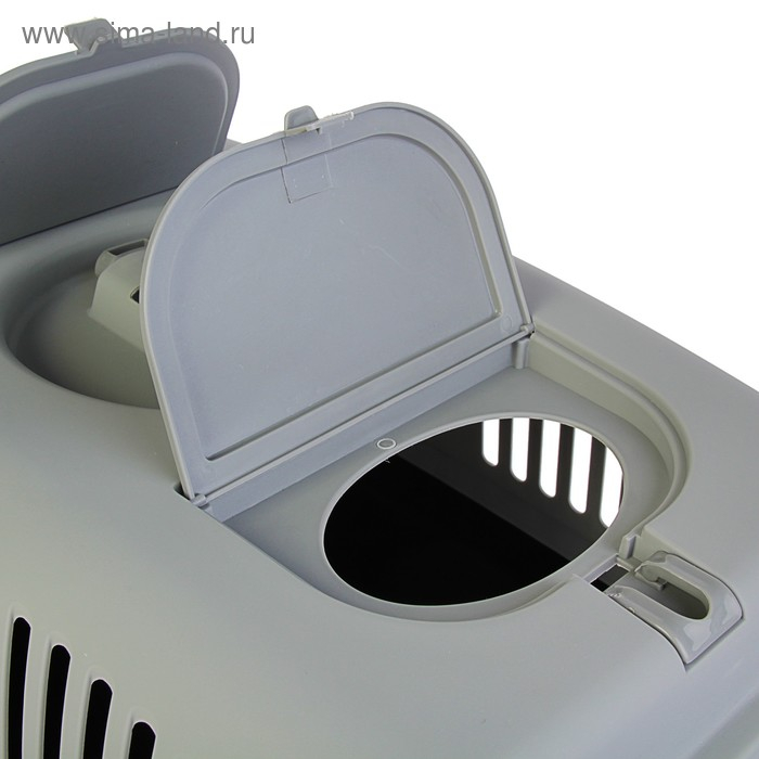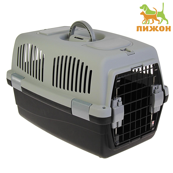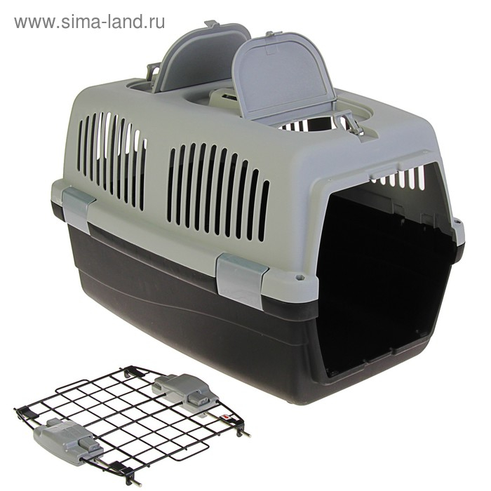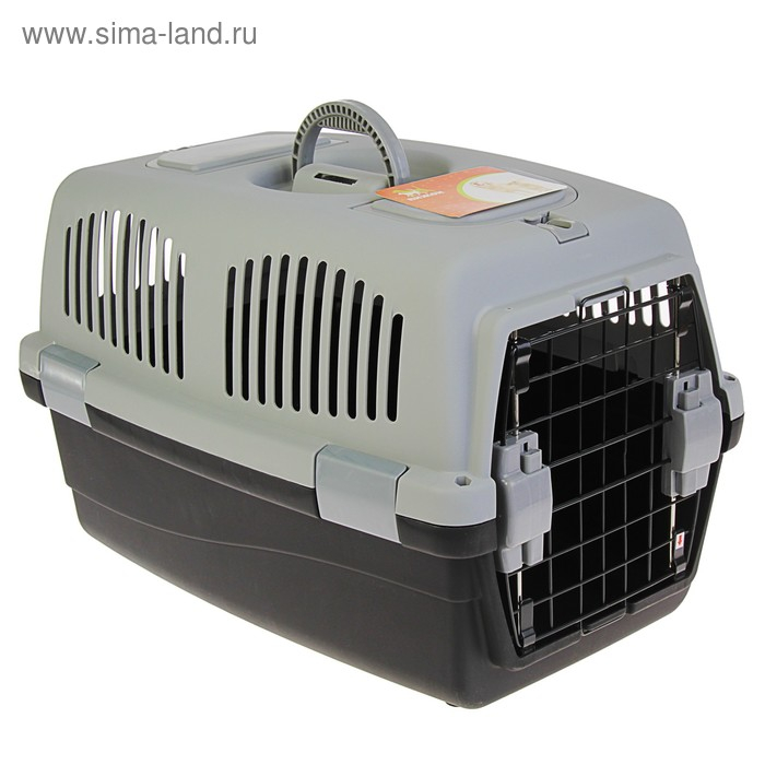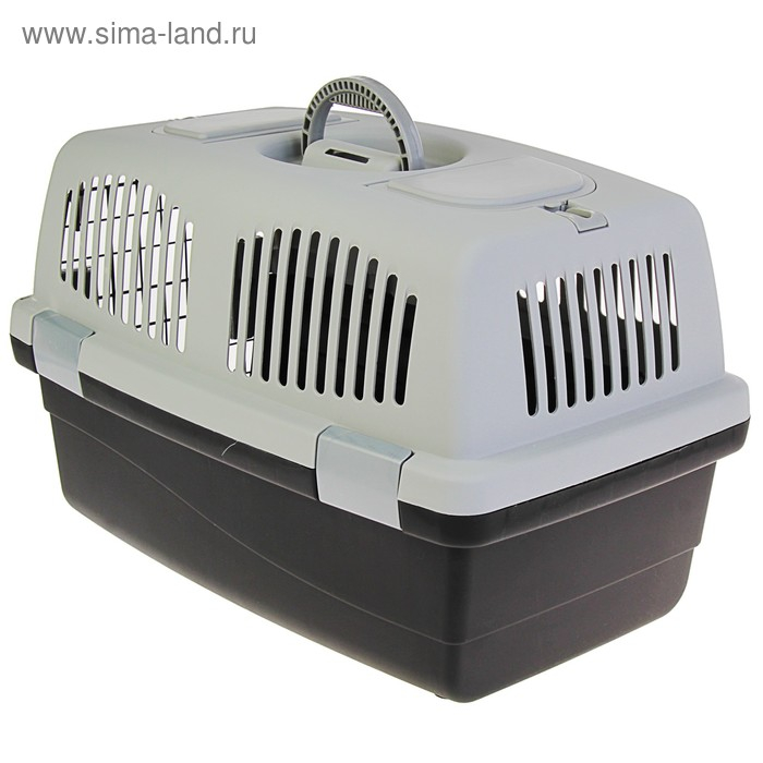 Переноска для животных с 2 люками и креплением для наплечного ремня 58х37х37, до 12 кг, серо-чёрная