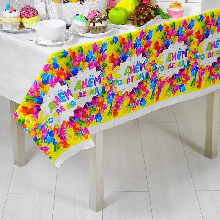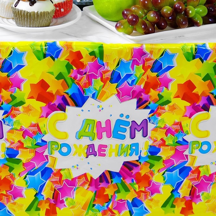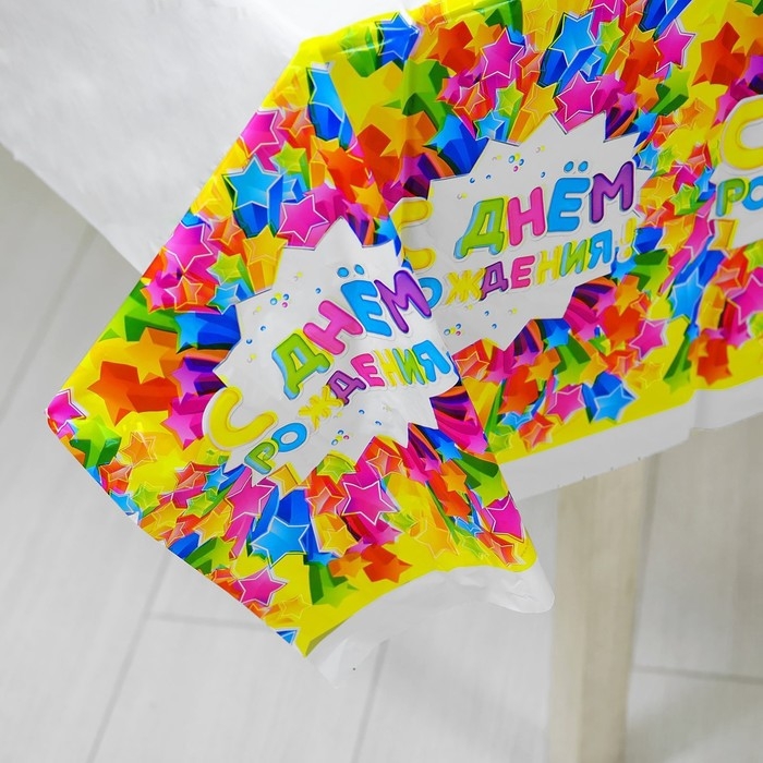 Скатерть одноразовая «С днём рождения», звёзды, 180х137 см