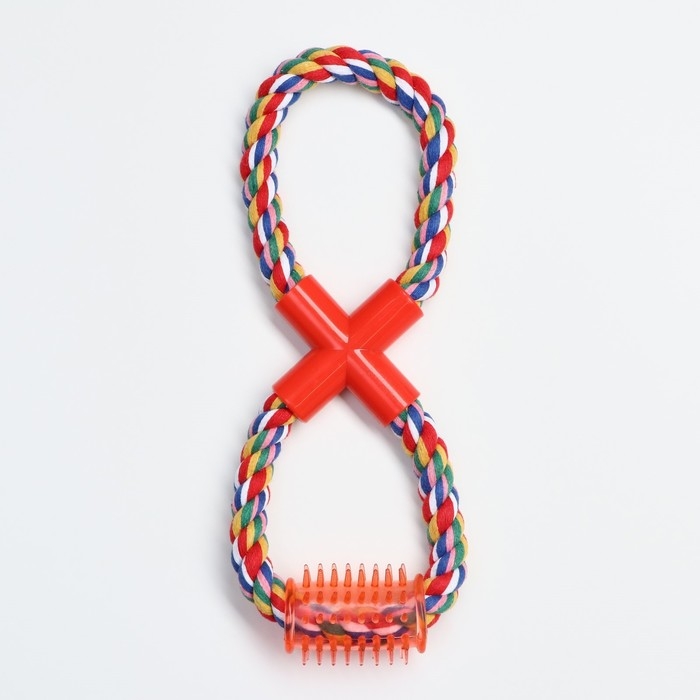 Игрушка тренировочная канатная "Восьмерка с зубочисткой", до 27 см, до 140 г, микс цветов