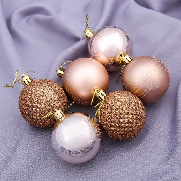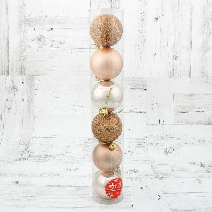 Набор шаров пластик d-7,5 см, 6 шт "Ажур" красный бежевый