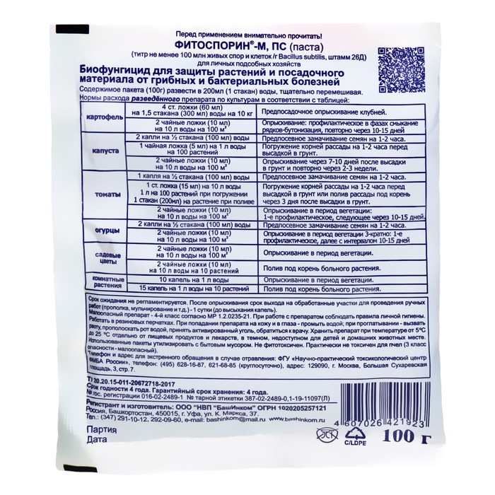 Препарат предназначен для защиты растений и посадочного материала от бактериальных и грибных заболеваний.