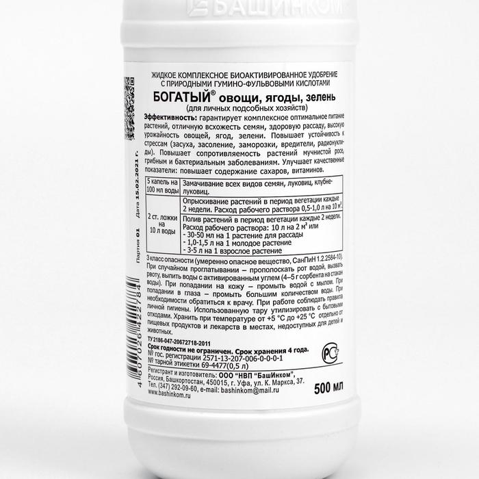 Удобрение для овощей, ягод, зелени Гуми-20 М Богатый, 0,5 л,