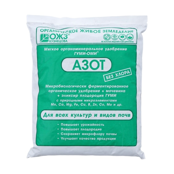 Органоминеральное удобрение — неоднородная смесь, включающая в себя порошок, гранулы и агломераты. Применяется для основного внесения при посеве (посадке) и в качестве подкормки для различных культур и декоративных насаждений, выращиваемых в открытом и защищённом грунте на всех типах почв. Действующие вещества: гуминовые кислоты, макро- и микроэлементы.