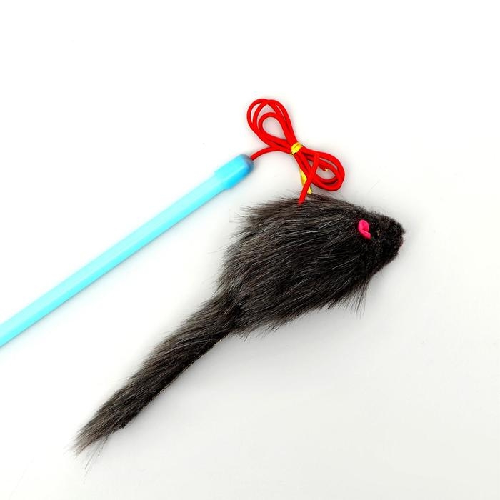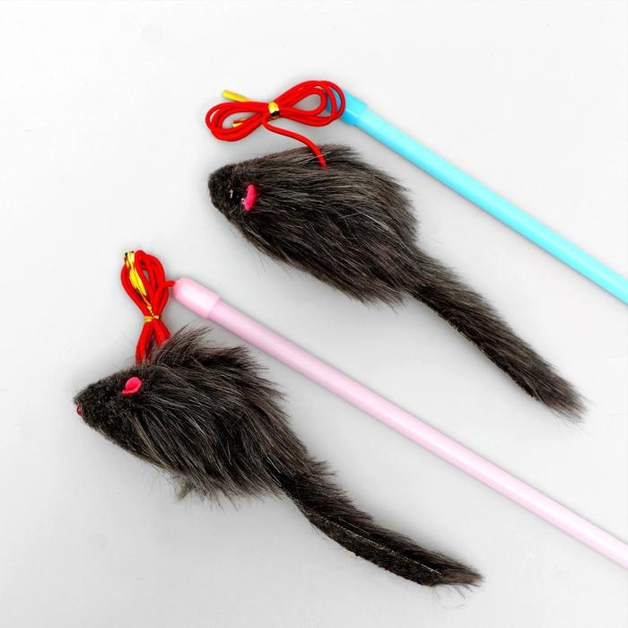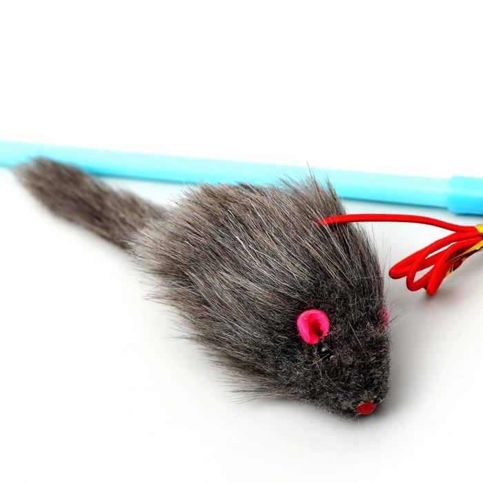 Дразнилка-удочка с серой мышью, палочка микс цветов