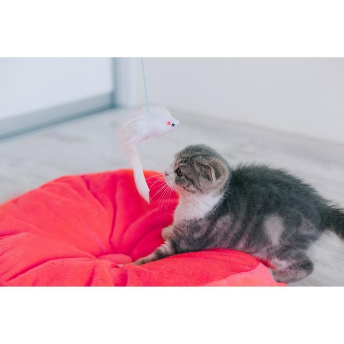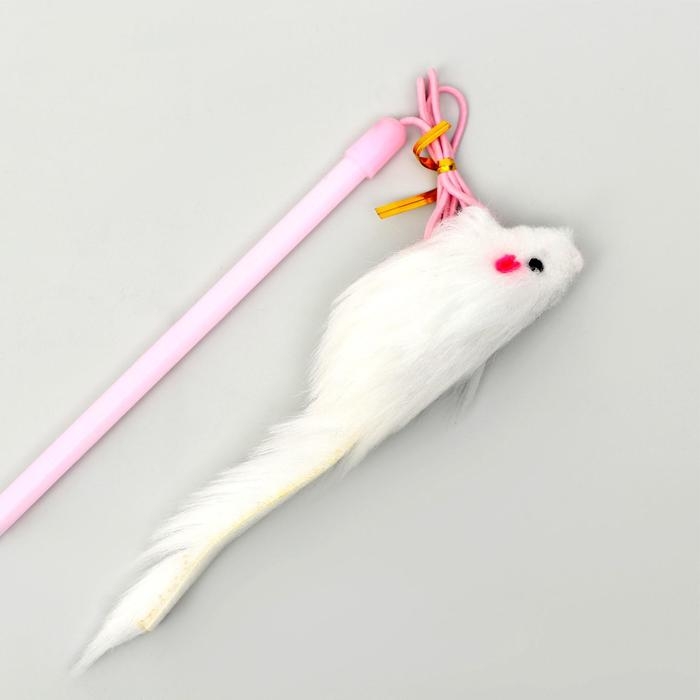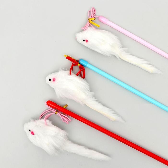 Дразнилка-удочка с белой мышью, палочка микс цветов