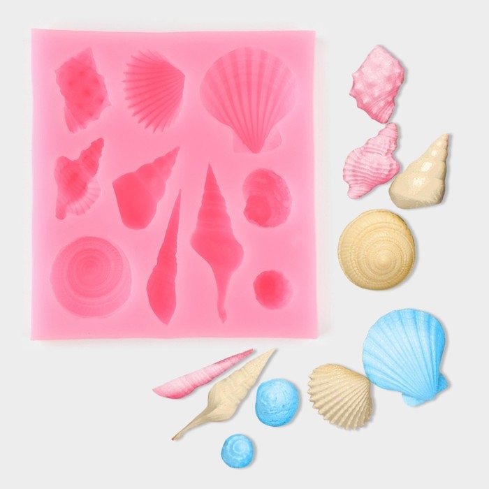 Молд «Ракушки», силикон, 7,7×7×1,5 см, цвет розовый