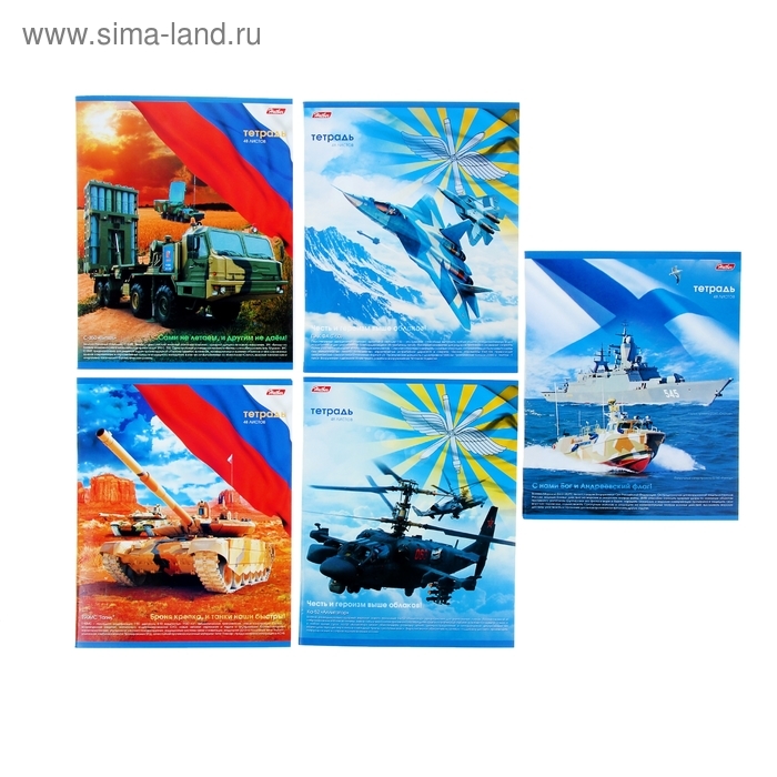 Тетрадь 48 листов клетка "Российская армия", обложка мелованный картон, 5 видов МИКС