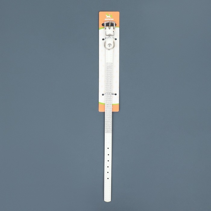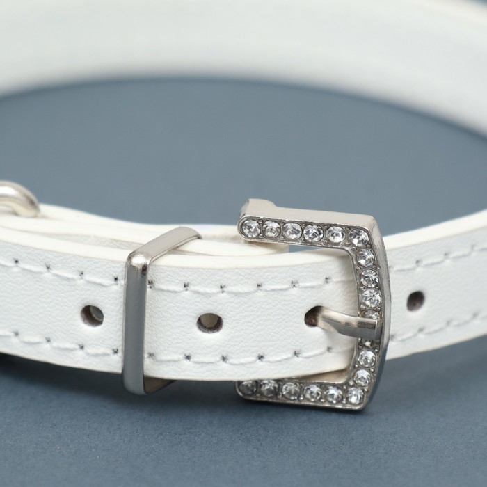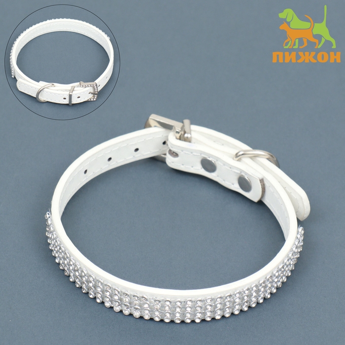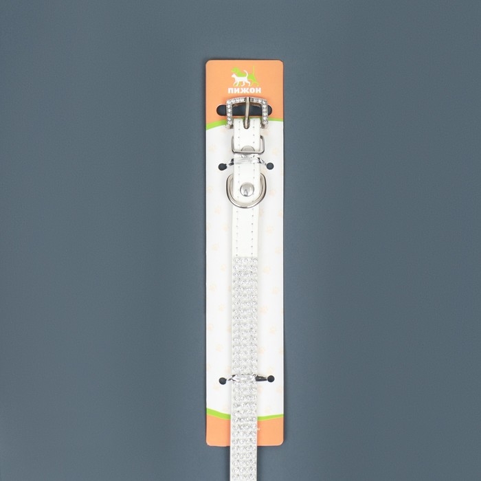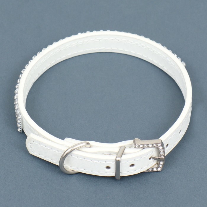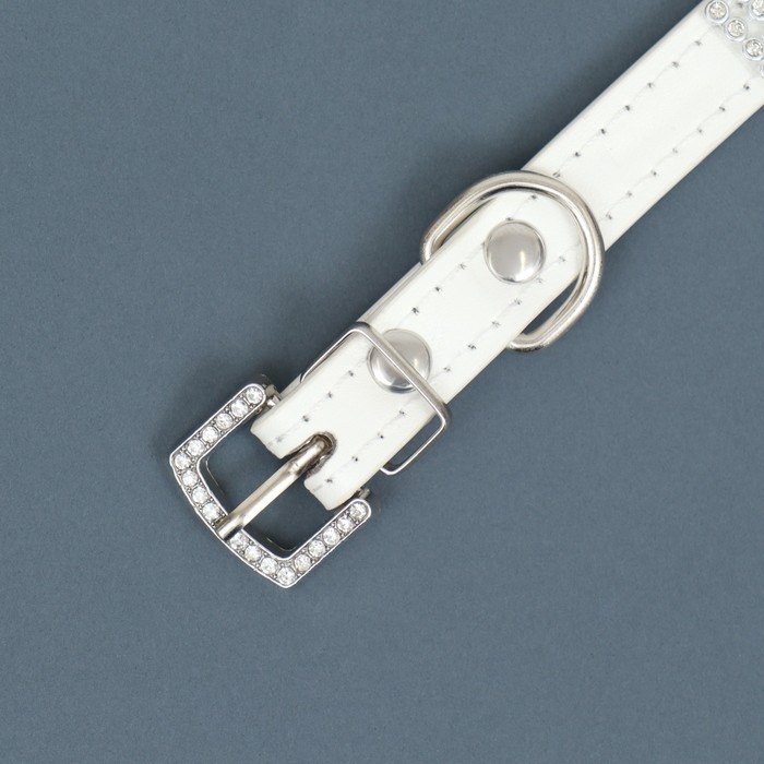 Ошейник со стразами в 4 ряда и стразы на пряжке, 38 х 1,5 см, ОШ 26-33, белый