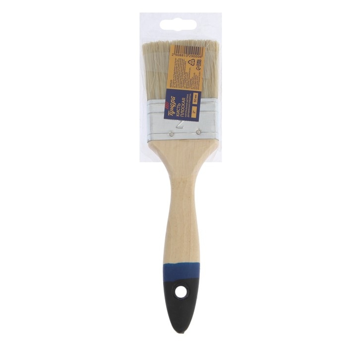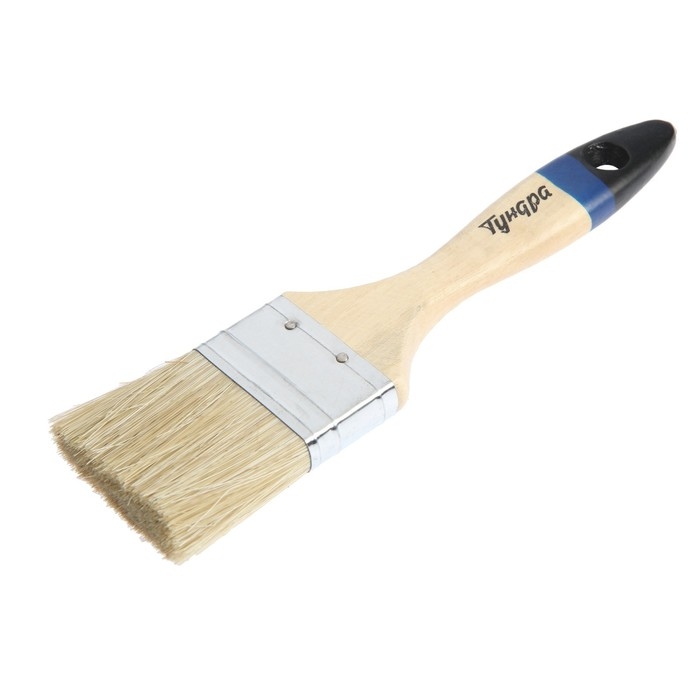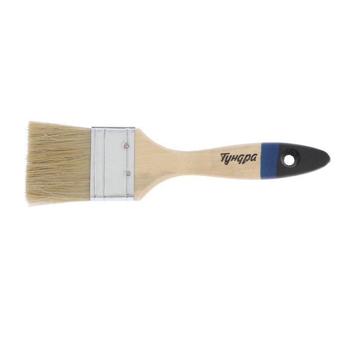 Кисть плоская ТУНДРА, натуральная щетина, деревянная ручка, 2", 50 мм