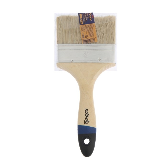 Кисть плоская ТУНДРА, смешанная щетина, деревянная рукоятка, 4", 100 мм