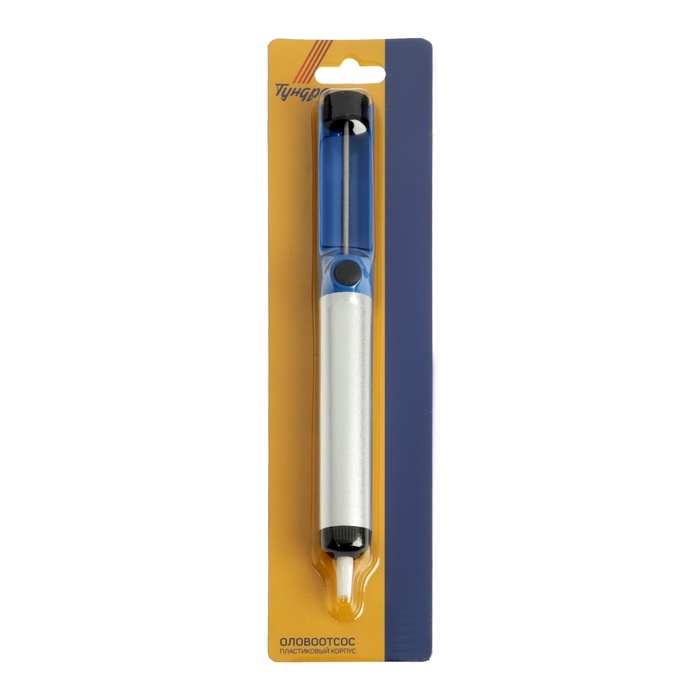 Оловоотсос ТУНДРА предназначен для удаления излишков припоя в ходе процесса пайки. Конструкция инструмента выполнена по принципу вакуумного насоса: на конце прибора расположена специальная насадка для втягивания расплавленного металла с обрабатываемой поверхности.