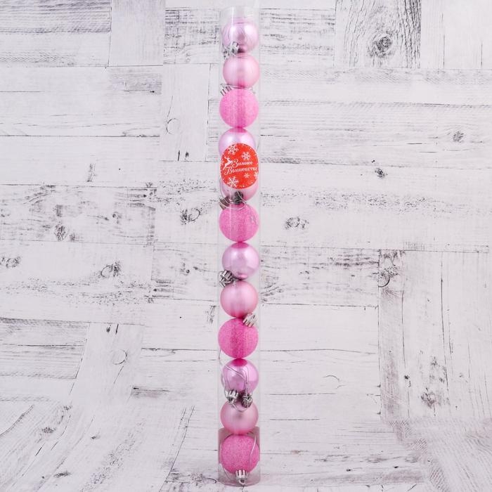 Набор шаров пластик d-4 см, 12 шт "Перелив ассорти" розовый