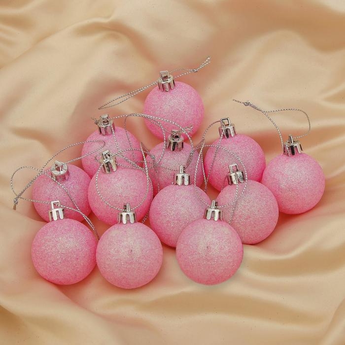 Набор шаров пластик d-4 см, 12 шт "Перелив" розовый
