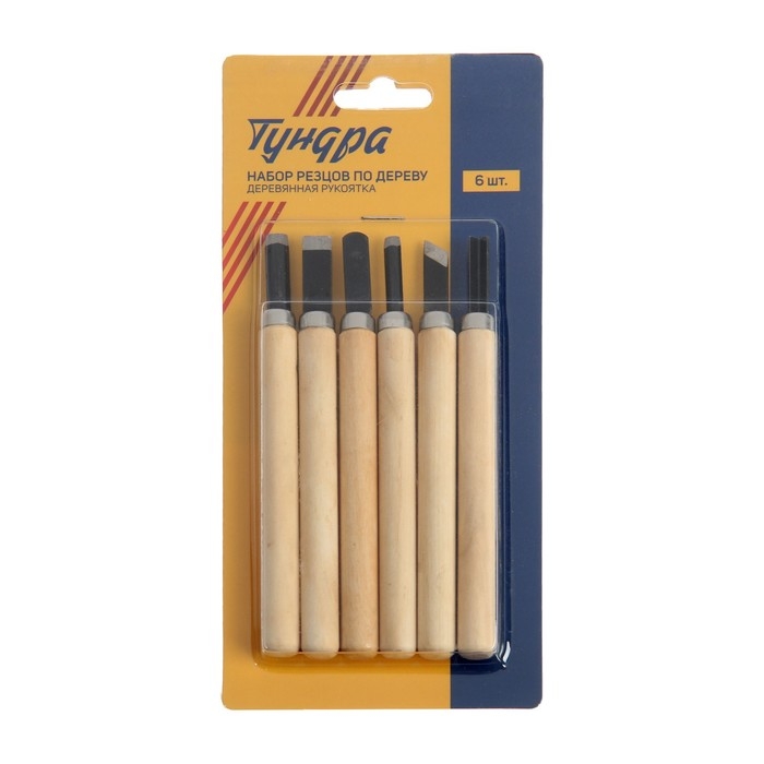 Набор резцов по дереву ТУНДРА, деревянная рукоятка, 6 шт.