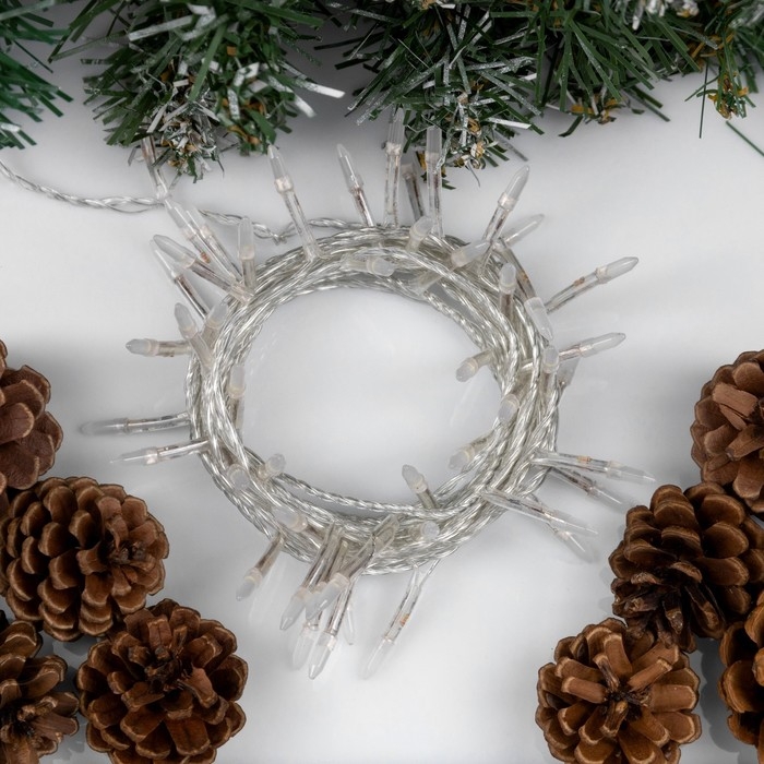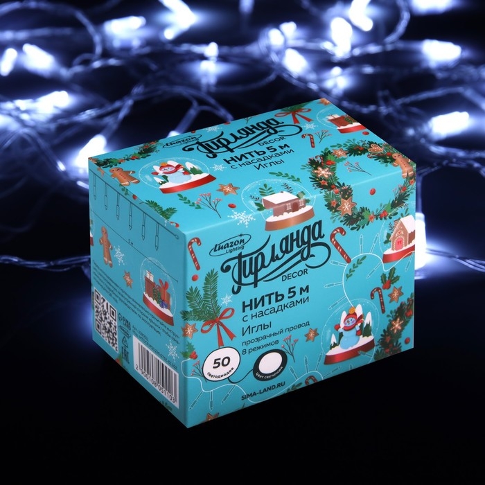 Гирлянда «Нить» 5 м с насадками «Игла», IP20, прозрачная нить, 50 LED, свечение белое, 8 режимов, 220 В