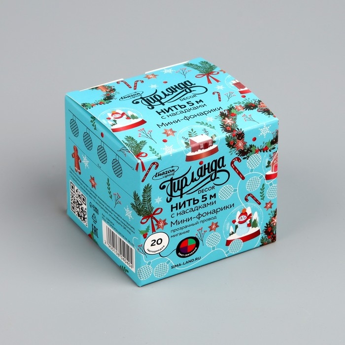 Гирлянда «Нить» 5 м с насадками «Мини фонарик», IP20, прозрачная нить, 20 LED, свечение мульти (RG/RB), мигание, 220 В