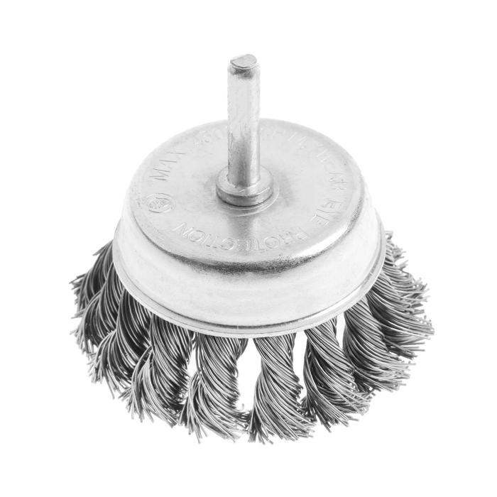 Щетка металлическая для дрели ТУНДРА, со шпилькой, крученая проволока, "чашка", 65 мм