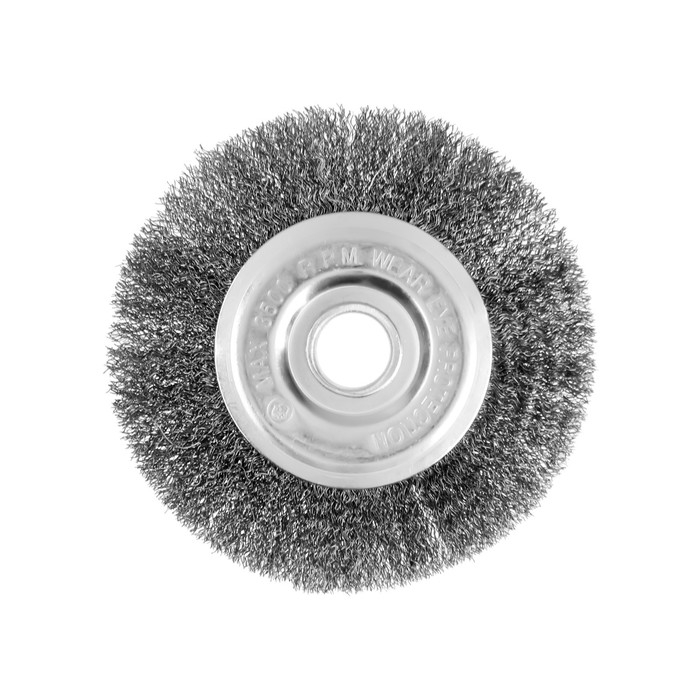 Плоская металлическая щётка ТУНДРА предназначена для зачистки, шлифования, полирования, матирования изделий из различных материалов, удаления ржавчины и грязи с металлических поверхностей в щадящем режиме. Применяется совместно с угловой шлифовальной машиной, посадочное отверстие - 22,2 мм.
