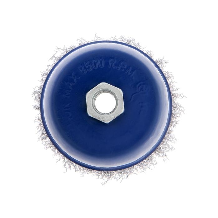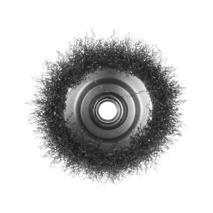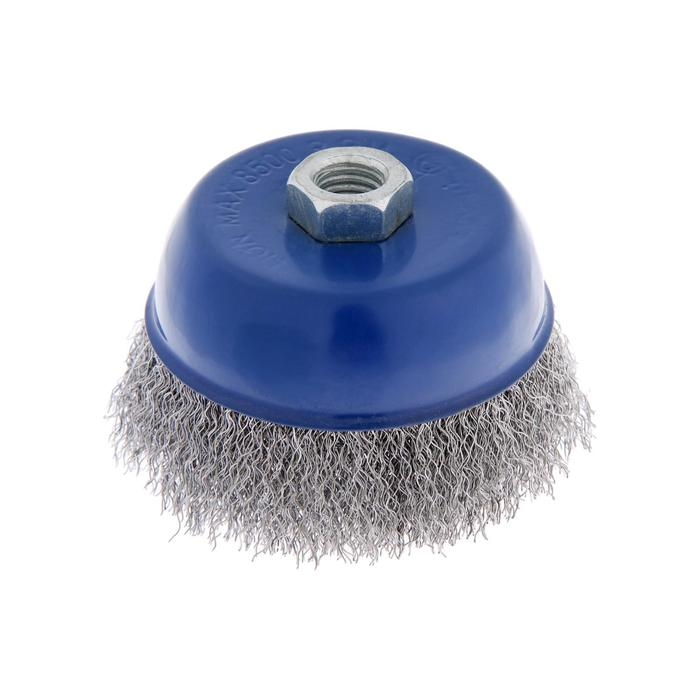 Металлическая щётка чашечного типа ТУНДРА предназначена для зачистки, шлифования, полирования, матирования изделий из различных материалов, удаления ржавчины и грязи с металлических поверхностей в щадящем режиме. Применяется совместно с угловой шлифовальной машиной, тип крепления - М14.