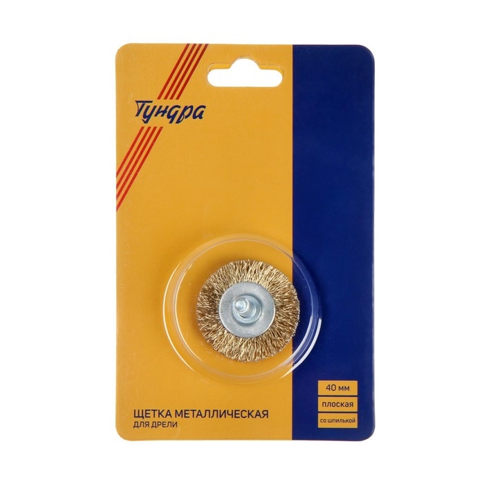 Щетка металлическая для дрели ТУНДРА, со шпилькой, плоская, 40 мм