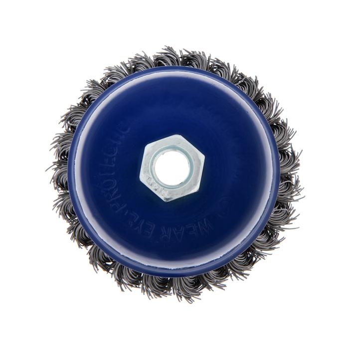 Металлическая кручёная щётка чашечного типа ТУНДРА предназначена для грубой зачистки металлических поверхностей от ржавчины и грязи, удаления неровностей и сглаживания сварных швов. Применяется совместно с угловой шлифовальной машиной, тип крепления - М14.