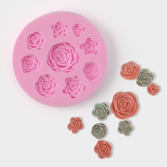 Молд Доляна «Круговорот роз», силикон, d=8 см, цвет розовый