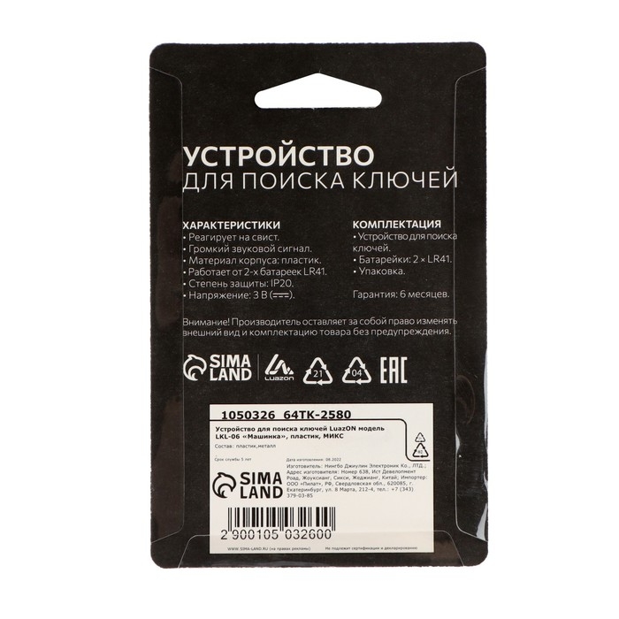 Брелок для поиска ключей Luazon LKL-06 «Машинка», МИКС