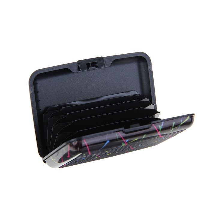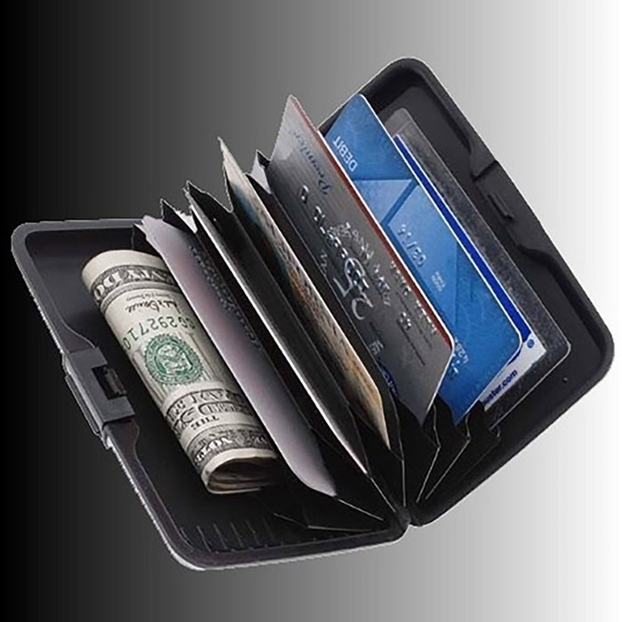 Стильный аксессуар с семью отделениями отлично подойдёт для хранения визиток, кредитных и банковских карт, денежных купюр и других небольших предметов. Прочный алюминевый корпус кошелька-визитницы защитит её содержимое от механических повреждений, влаги и воздействия огня.