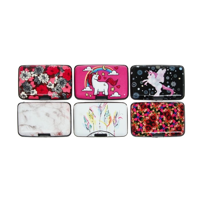 Визитница пластиковая, поверхность алюминиевая, 7 отделений внутри, МИКС