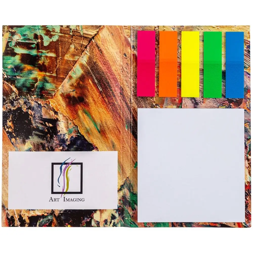 Блок для заметок с липким краем и стикеры-закладки ярких неоновых оттенков, собранные под одной цветной обложкой, — практичный набор, который всегда под рукой.