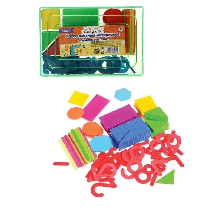 Касса цифр и счетных материалов "Учись считать", 132 элемента, пластик, микс