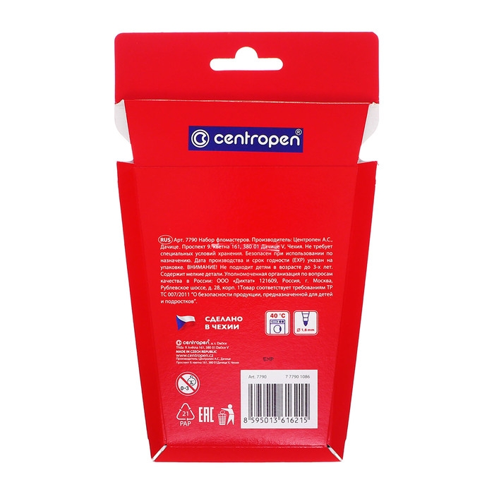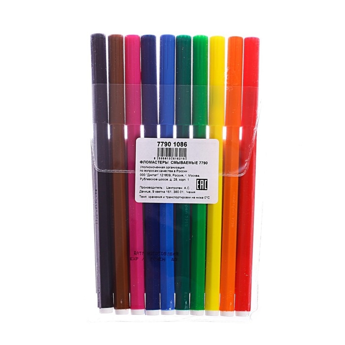 Фломастеры 10 цветов, 1.8 мм Centropen 7790 "Пингвины", пластиковый конверт, смываемые