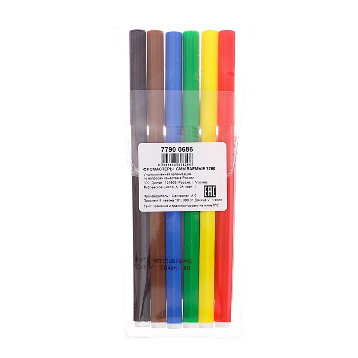 Фломастеры 6 цветов Centropen Пингвины 7790/06, линия 1.0 мм, пластиковый конверт