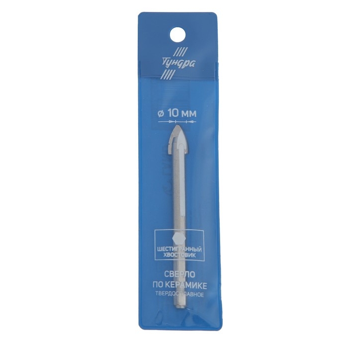 Сверло по керамике твердосплавное ТУНДРА, шестигранный хвостовик, 10 мм