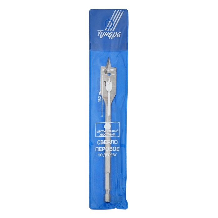 Сверло по дереву перовое ТУНДРА, шестигранный хвостовик, 16 х 152 мм