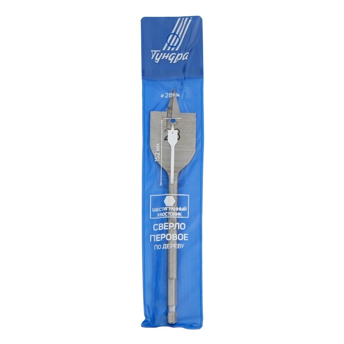 Сверло по дереву перовое ТУНДРА, шестигранный хвостовик, 28 х 152 мм