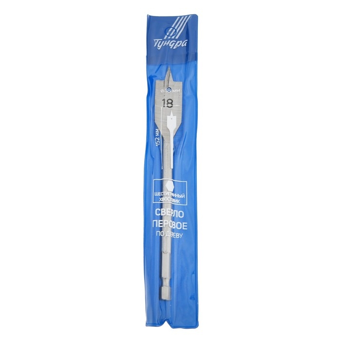 Сверло по дереву перовое ТУНДРА, шестигранный хвостовик, 18 х 152 мм