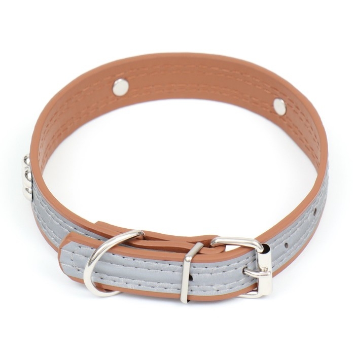Ошейник с подкладом из прессованной кожи, 59 х 3 см, ОШ 41-51 см, коричневый