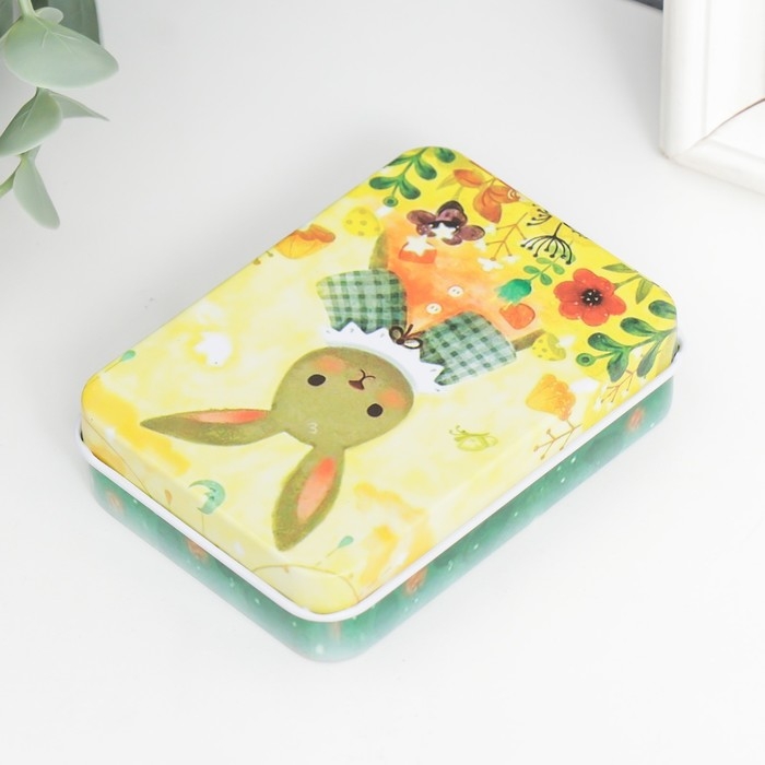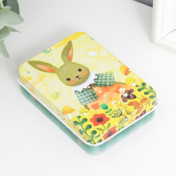 Шкатулка металл прямоугольная "Зайка" 2,7х9х6,5 см
