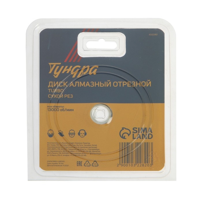 Диск алмазный отрезной ТУНДРА, TURBO-сегмент с защитными секторами, сухой рез, 115 х 22 мм
