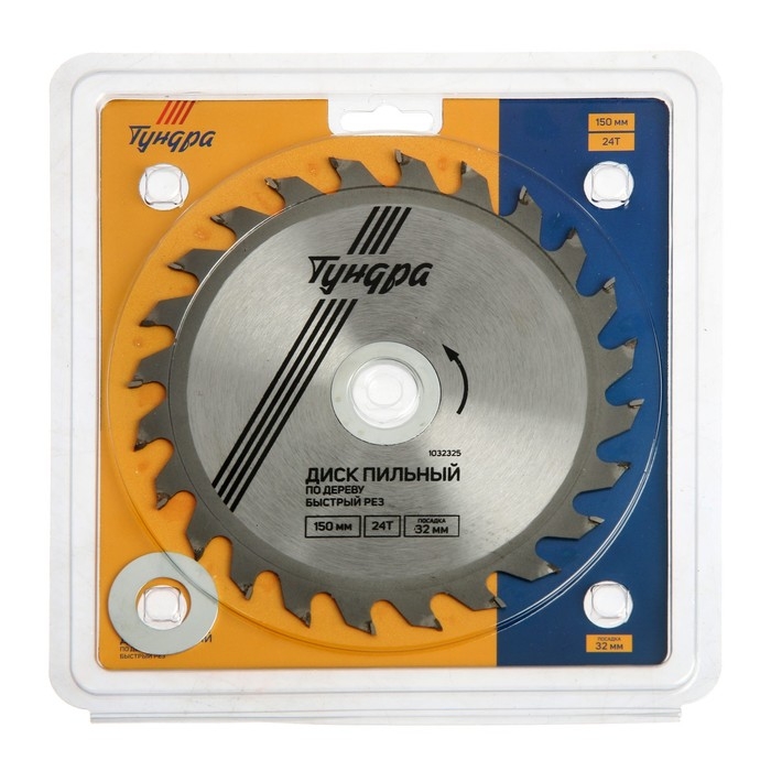 Диск пильный по дереву ТУНДРА, быстрый рез, 150 х 32 мм (кольца на 22,20,16), 24 зуба