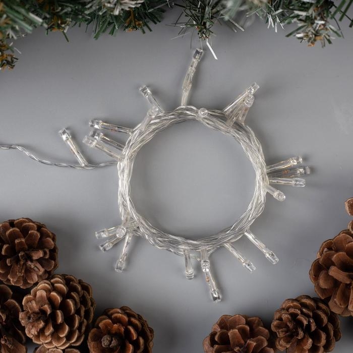 Гирлянда «Нить» 5 м с насадками «Ёжики белые», IP20, прозрачная нить, 30 LED, свечение белое, 8 режимов, 220 В