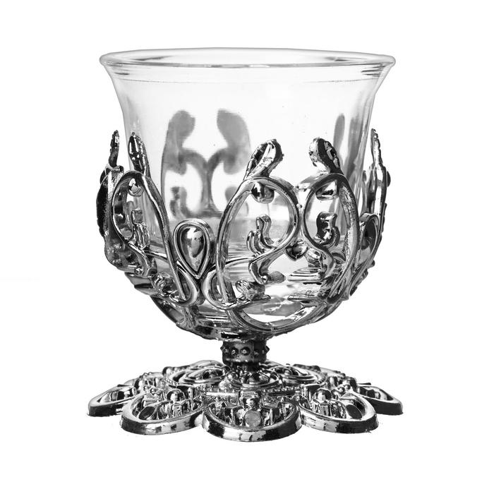 Подсвечник стекло 1 свеча "Узор", цвет серебристый