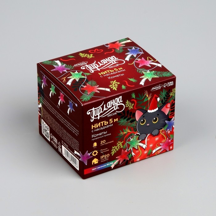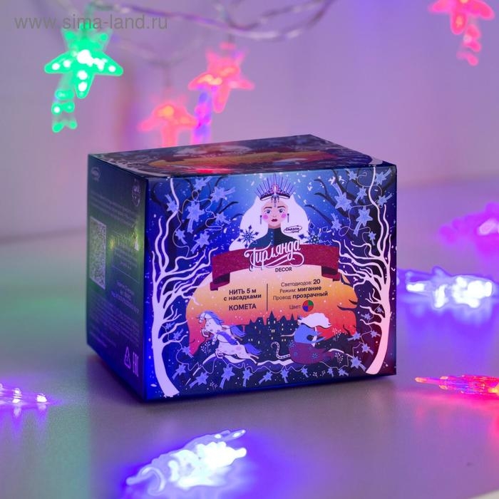 Гирлянда «Нить» 5 м с насадками «Комета», IP20, прозрачная нить, 20 LED, свечение мульти (RG/RB), мигание, 220 В