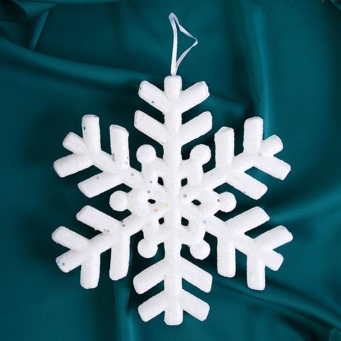 Украшение ёлочное "Снежинка белый с блёстками" d-20 см, белый