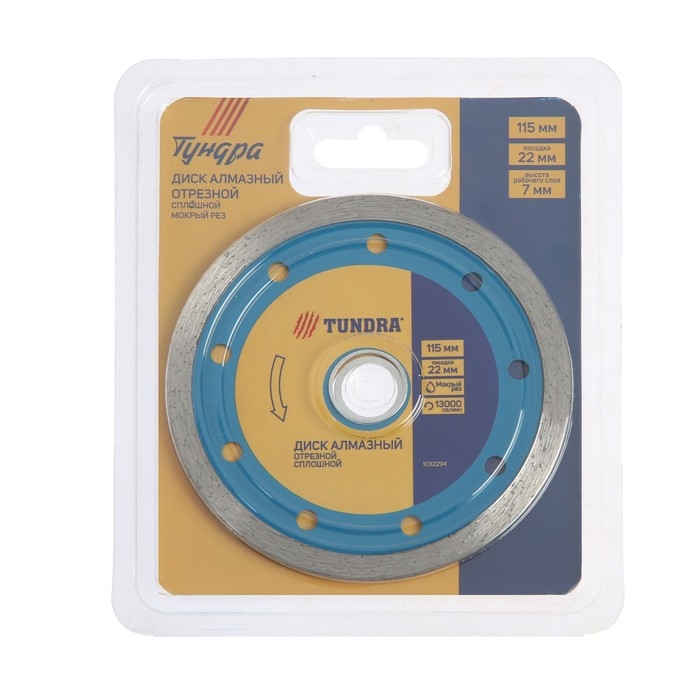 Диск алмазный отрезной ТУНДРА, сплошной, мокрый рез, 115 х 22 мм