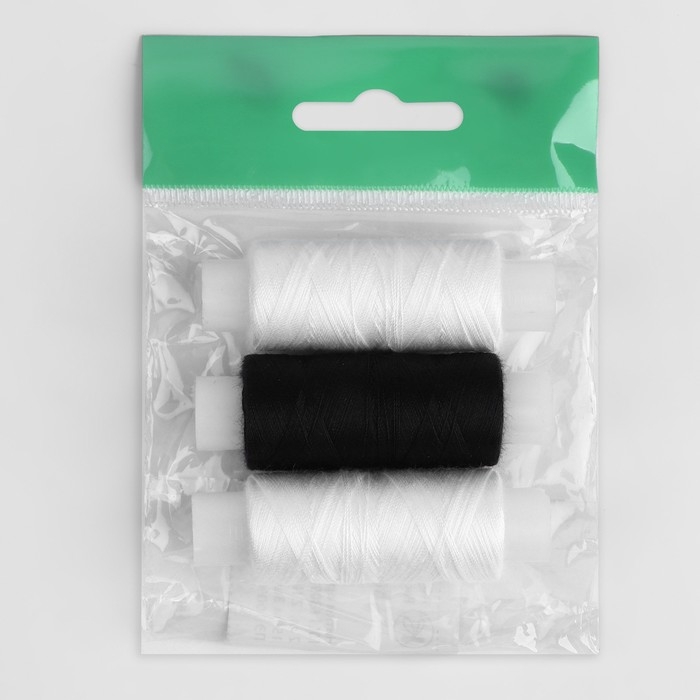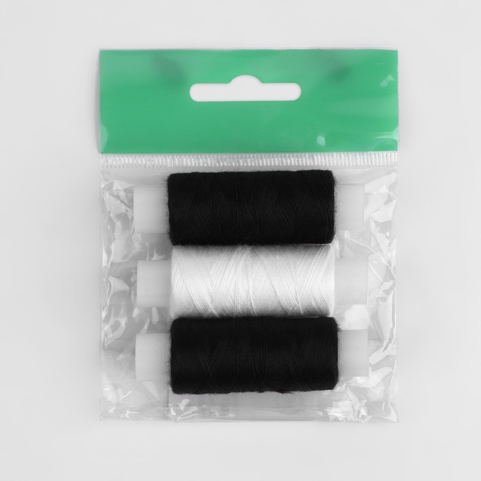 Набор ниток «Домино», 45ЛЛ, 150 м, 3 шт, цвет чёрный/белый МИКС