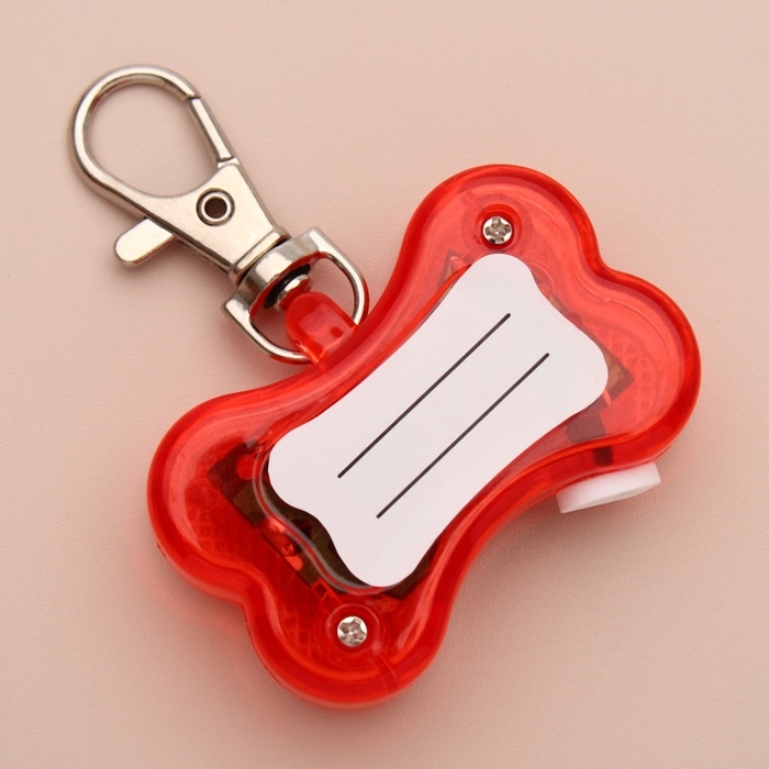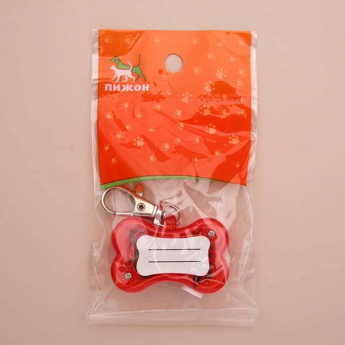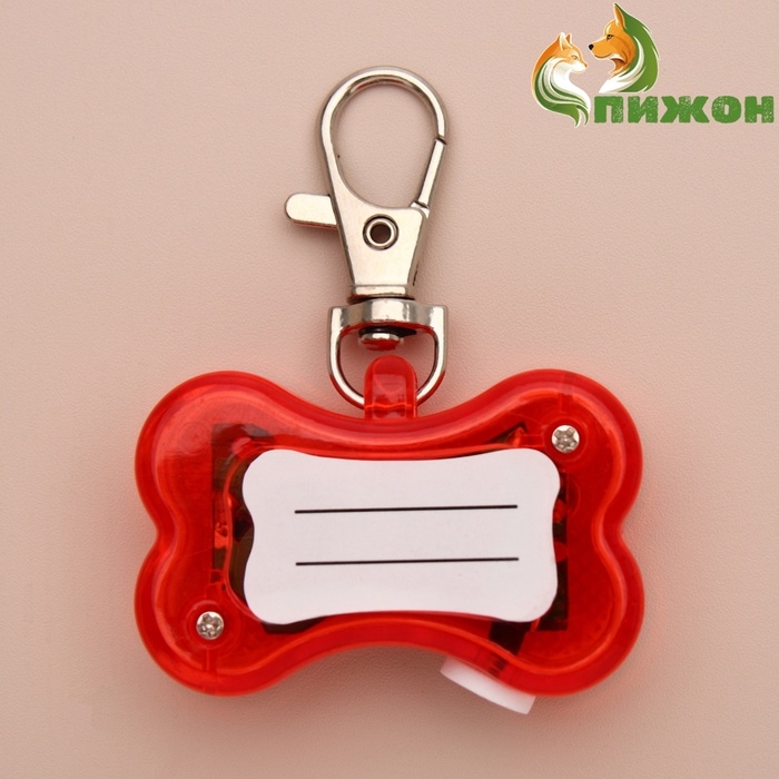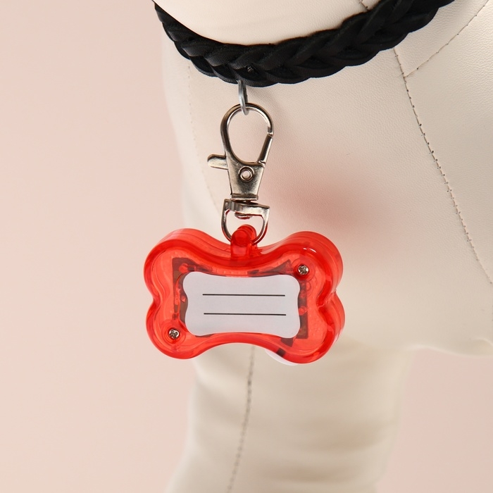 Маячок-адресник "Косточка" с наклейкой под записку, 3 режима свечения, красный
