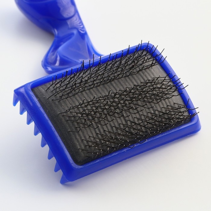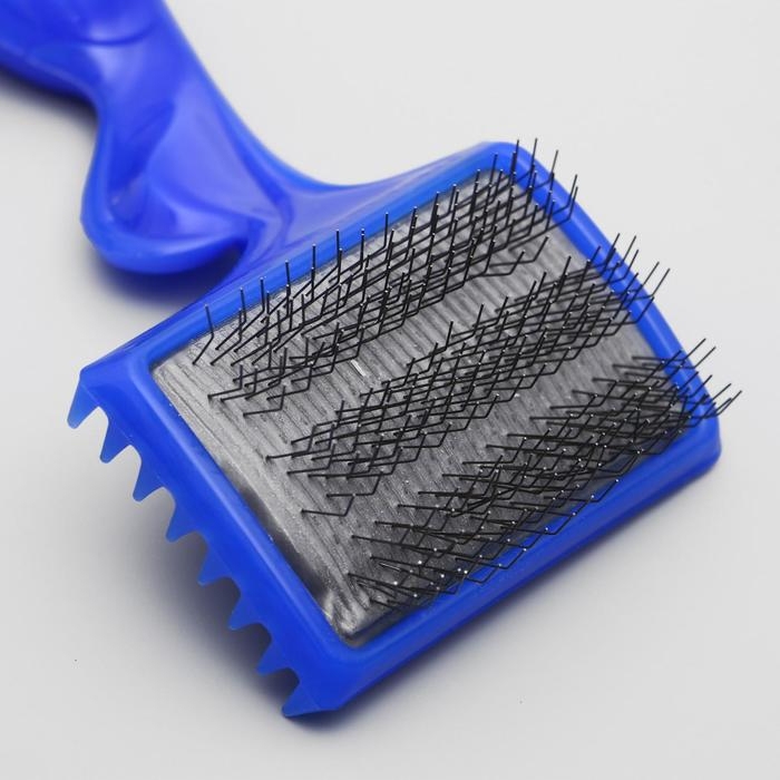 Для здоровья животного очень важно вычёсывать у него отмершие шерстинки с помощью Щётка - пуходёрка трёхрядная, основание 84 х 58 мм, синяя. Она не повреждает здоровые остевые волосы. Имеет длинные, тонкие металлические зубцы, загнутые на конце.